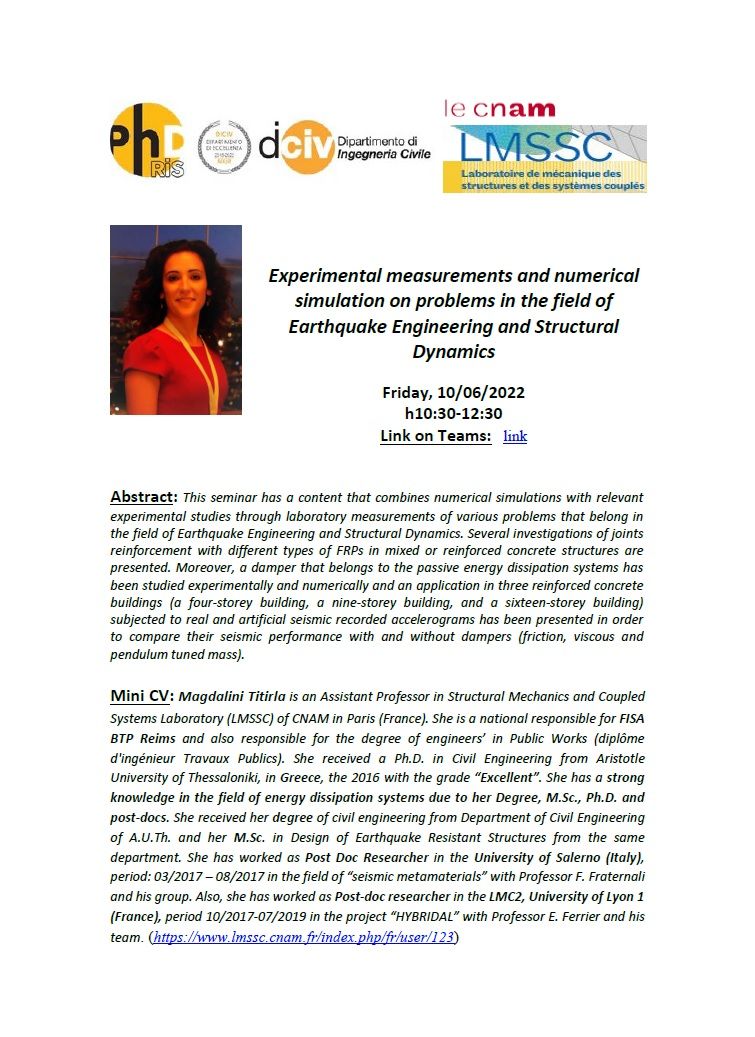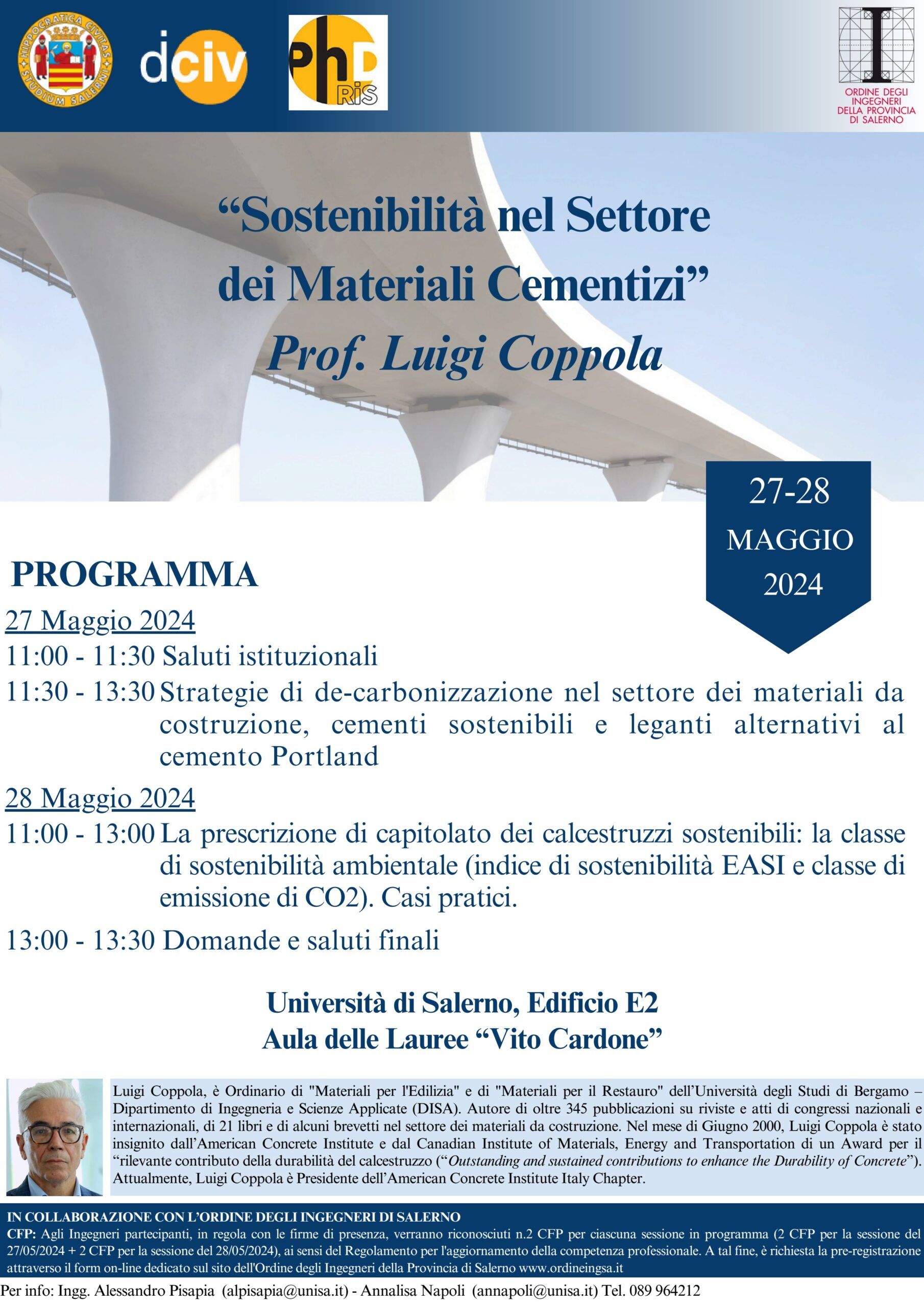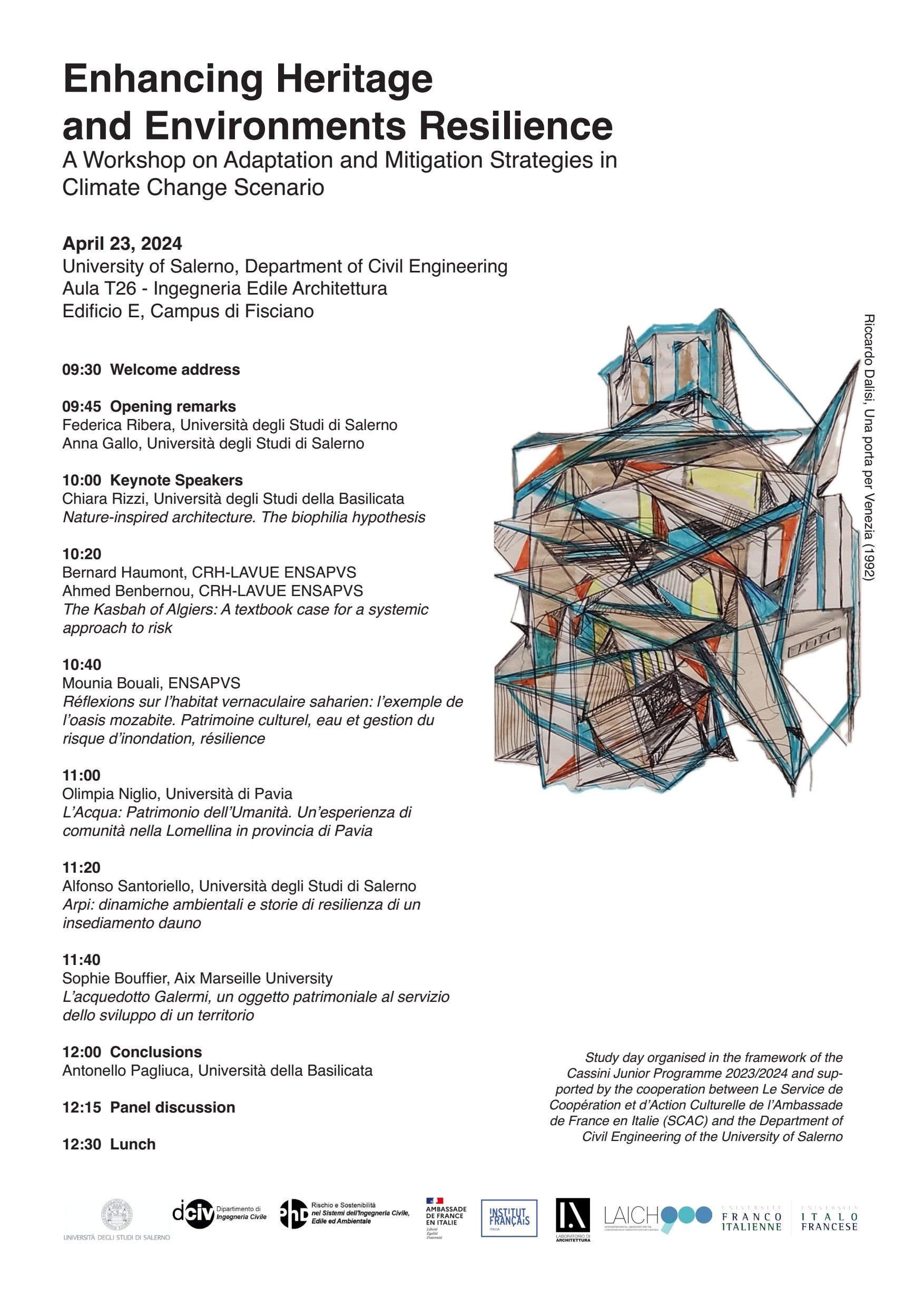 Study day organised in the framework of the Cassini Junior Programme 2023/2024 and supported by the cooperation between Le Service de Coopération et d’Action Culturelle de l’Ambassade de France en Italie (SCAC) and the Department of Civil Engineering of the University of Salerno