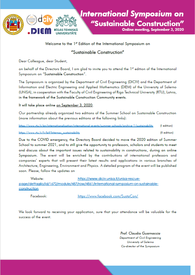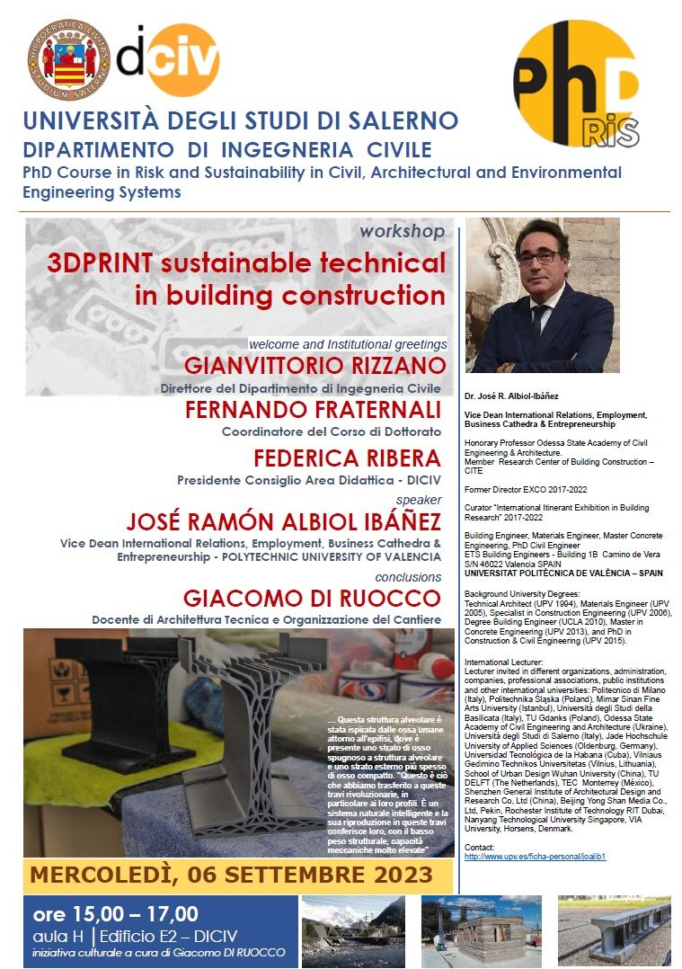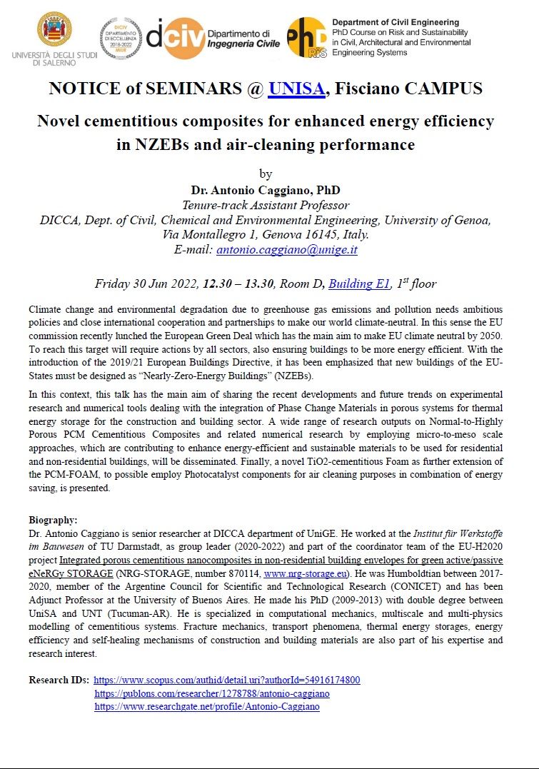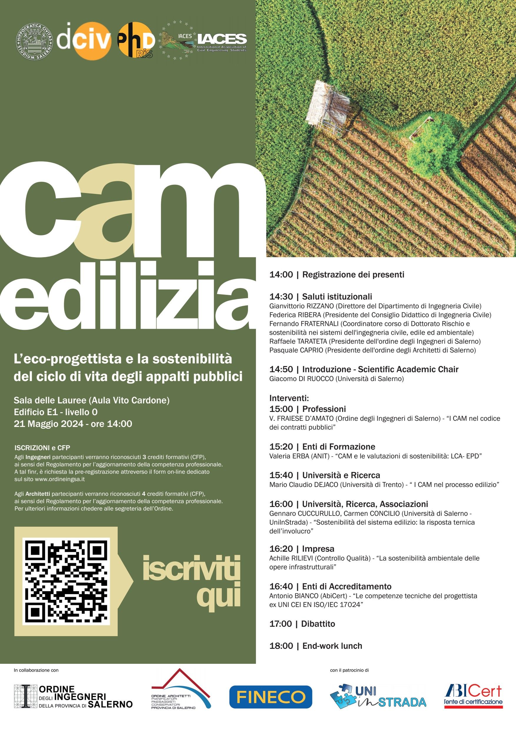 Study day organised in the framework of the Cassini Junior Programme 2023/2024 and supported by the cooperation between Le Service de Coopération et d’Action Culturelle de l’Ambassade de France en Italie (SCAC) and the Department of Civil Engineering of the University of Salerno