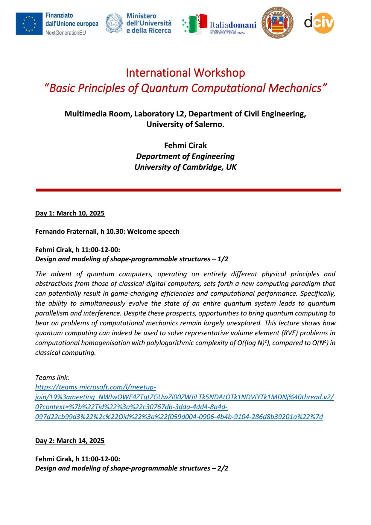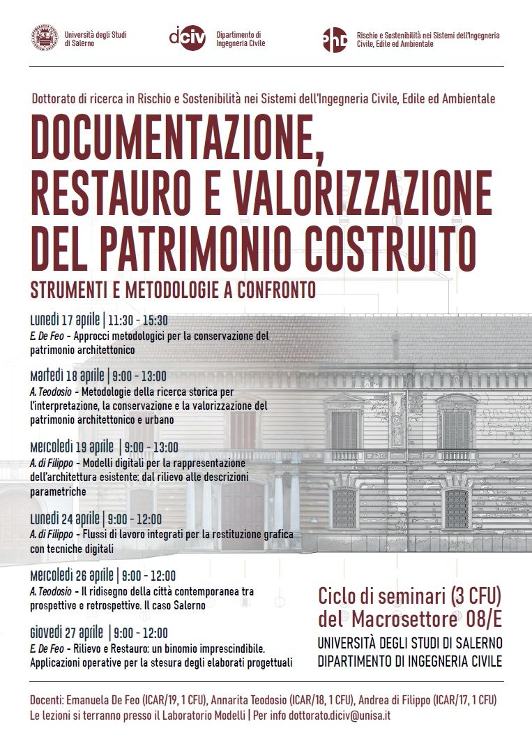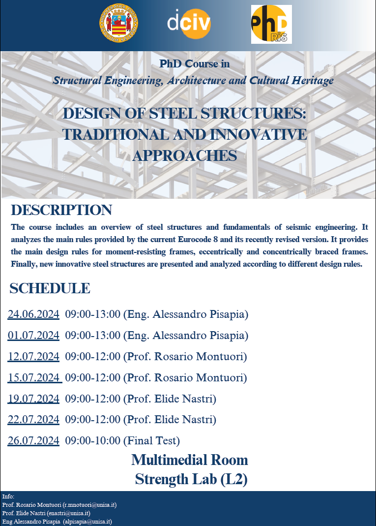 Attendance is mandatory in person in the Multimedia Room, Laboratory of Structural Engineering (STRENGTH, Building L2) for PhD Students of SACH – Cycle XL. The Workshop is part of the compulsory activities of the PhD Course “MATHEMATICAL AND MECHANICAL MODELS FOR ENGINEERING AND ARCHITECTURAL PROBLEMS” [8862100004].