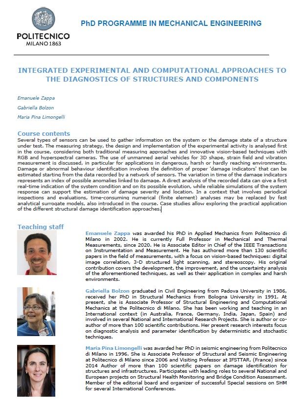 Tali corsi formano parte delle attività didattiche obbligatorie del Corso Modelli Matematici e Meccanici per l’Ingegneria e l’Architettura per il XXXIX ciclo del Dottorato “Structures, Architecture and Cultural Heritage” (SACH). La partecipazione dei Dottorandi iscritti a tale corso sarà registrata.