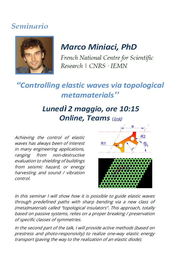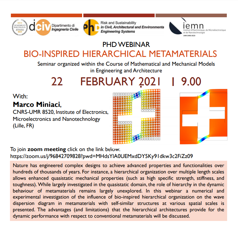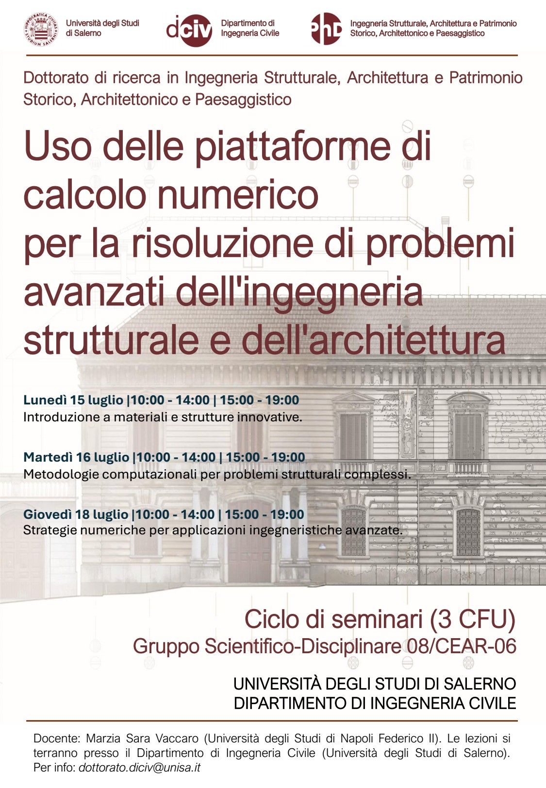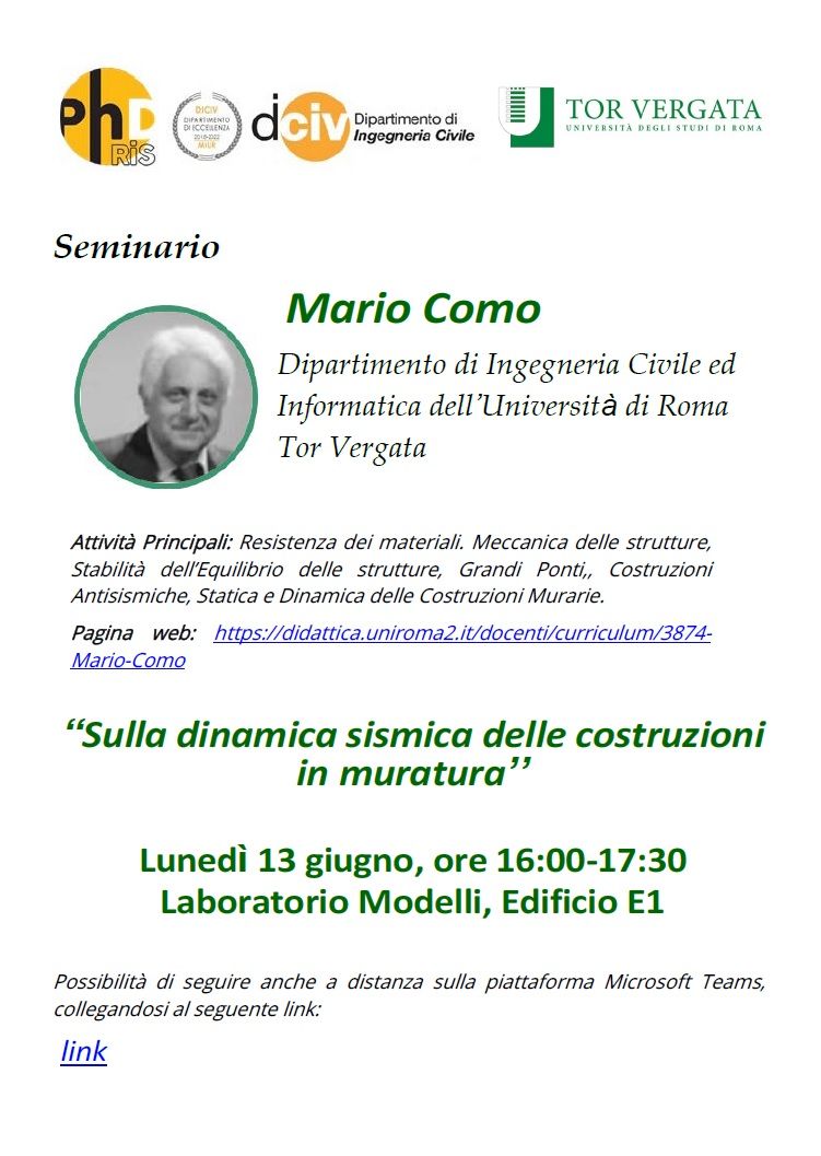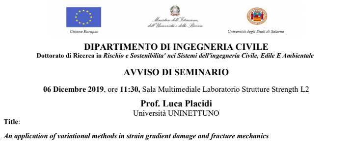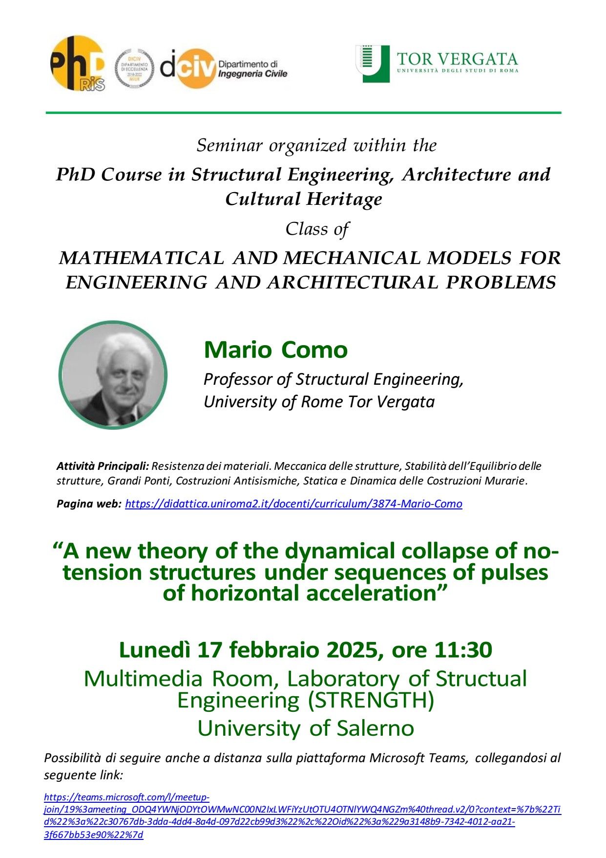 Il seminario formerà parte delle attività del Corso di Dottorato in [8862100004] MATHEMATICAL AND MECHANICAL MODELS FOR ENGINEERING AND ARCHITECTURAL PROBLEMS ed è, pertanto, obbligatorio per i dottorandi del XL ciclo SACH.