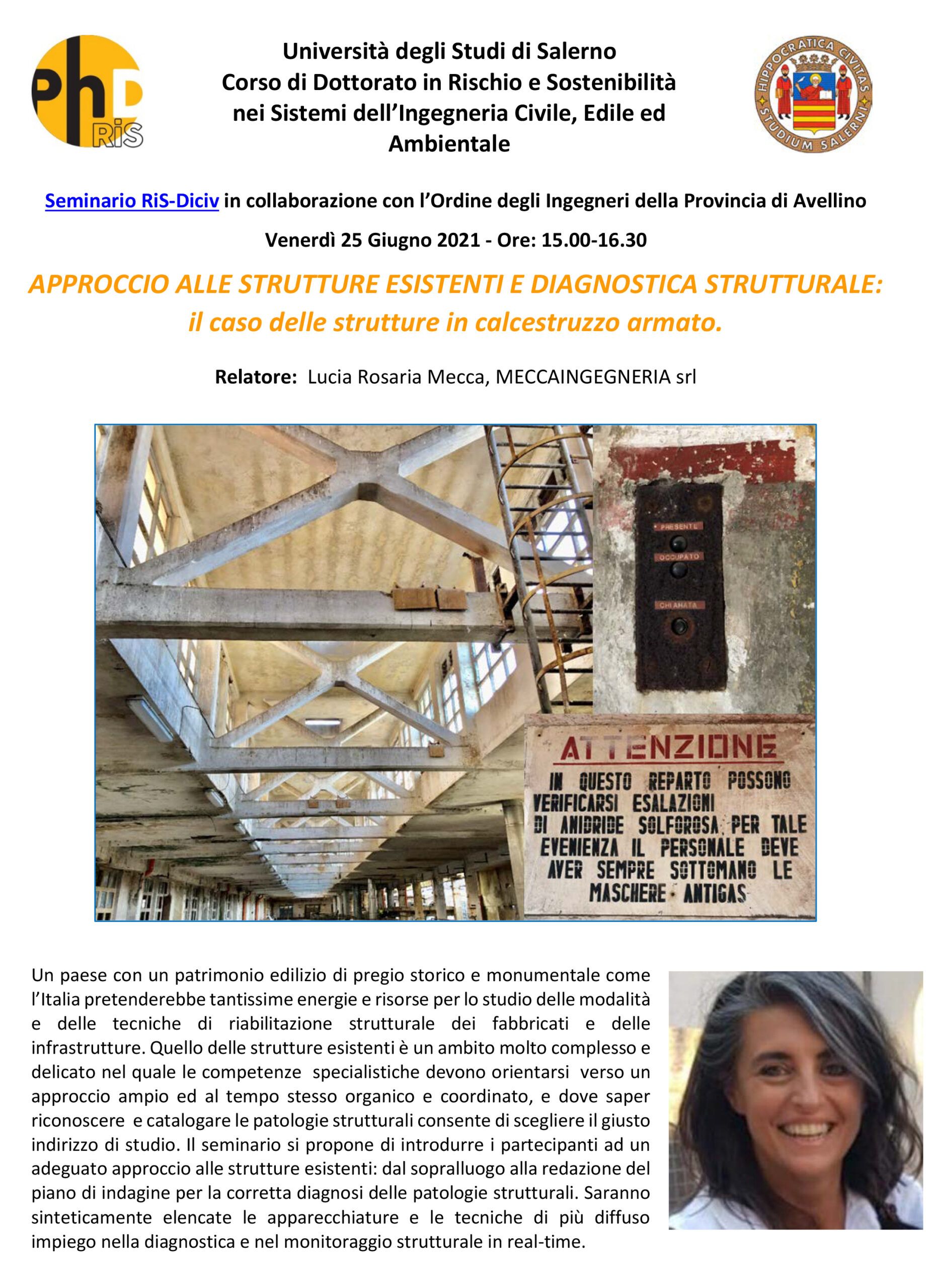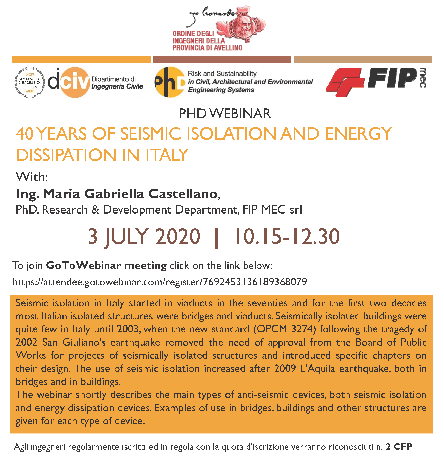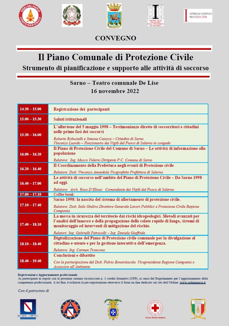 Evento organizzato con la collaborazione dell’Ordine degli Ingegneri della Provincia di Avellino. Per gli interessati al conseguimento di crediti formativi professionali si rimanda al seguente link (fino al raggiungimento del numero di posti disponibili): https://avellino.ordingegneri.it/aggiornamento-professionale/eventi-formativi/